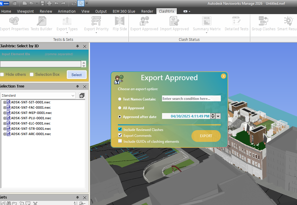 - Only clashes marked as approved or reviewed will be exported.