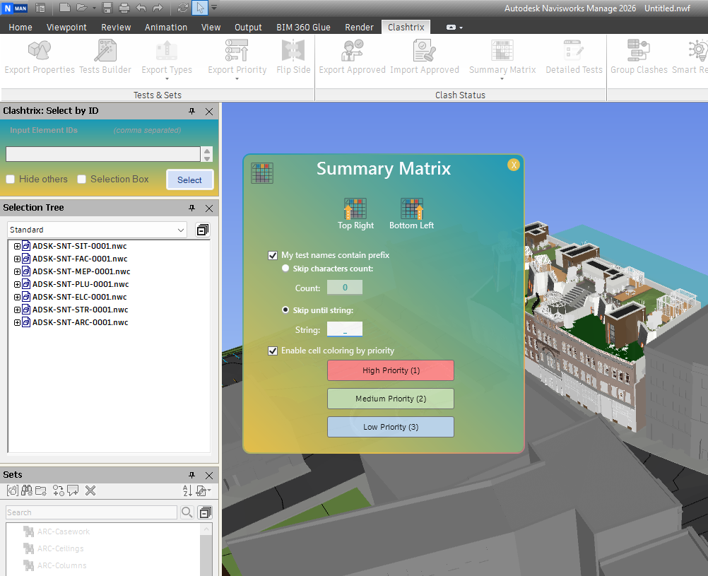 Compatibility: Supported in Navisworks 2026 and later. Ensure the file is already saved as version 2026 or newer before opening it in Navisworks for the priority column to appear in Clash Detective window.
